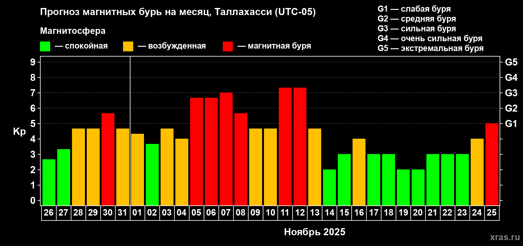Прогноз магнитных бурь Таллахасси — 26 октября 2025 года