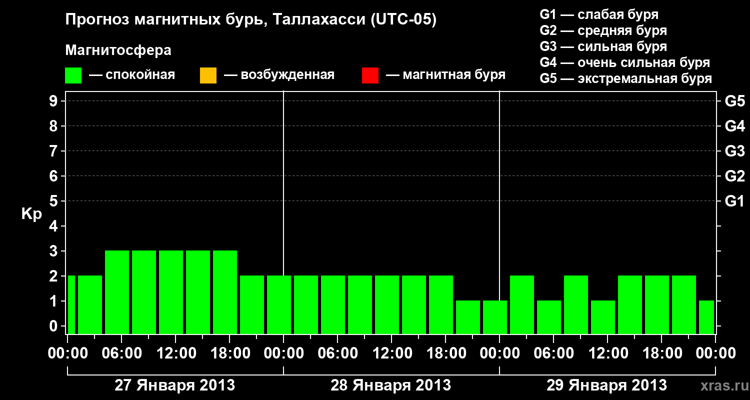 Прогноз магнитных бурь Таллахасси на 27 января 2013 года