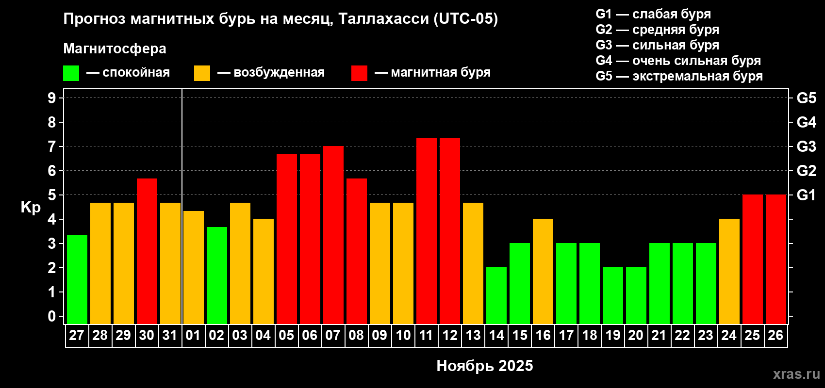 Прогноз магнитных бурь Таллахасси на 27 октября 2025 года