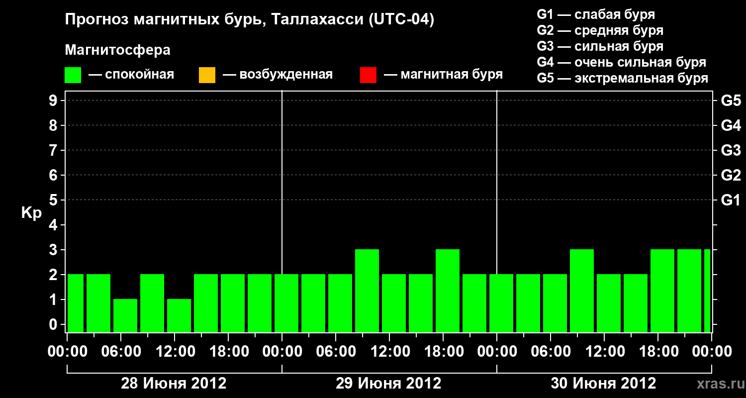 Прогноз магнитных бурь Таллахасси на 28 июня 2012 года