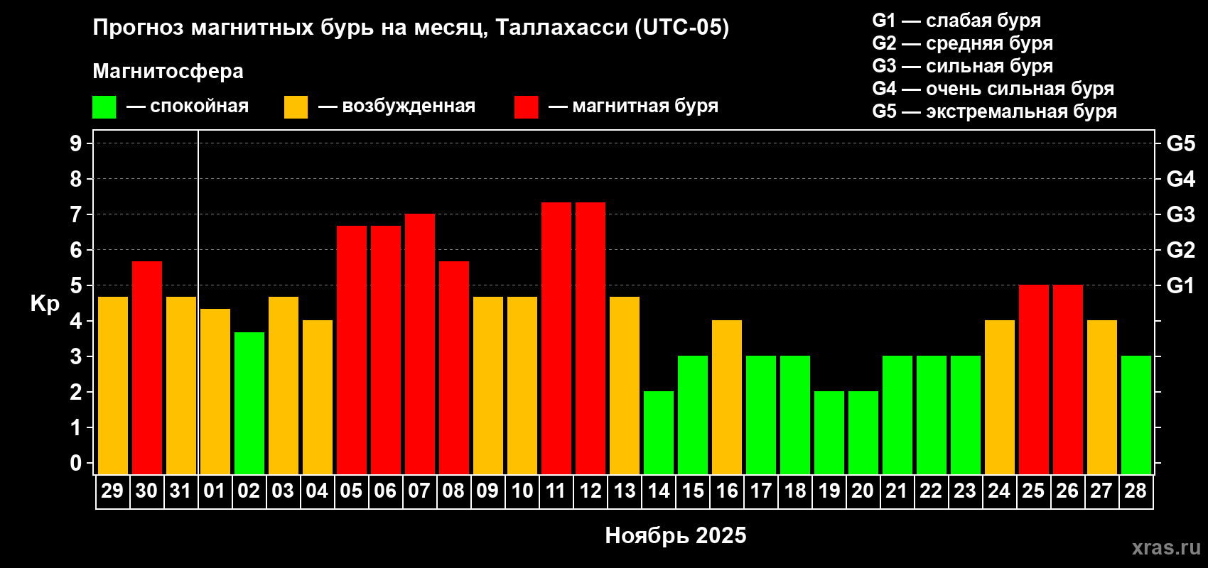 Прогноз магнитных бурь Таллахасси — 29 октября 2025 года