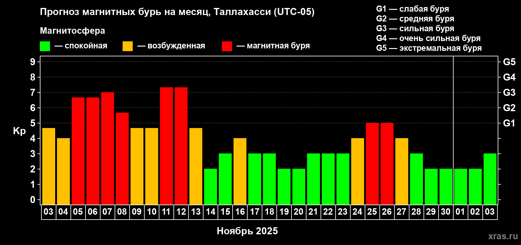 Прогноз магнитных бурь Таллахасси — 3 ноября 2025 года