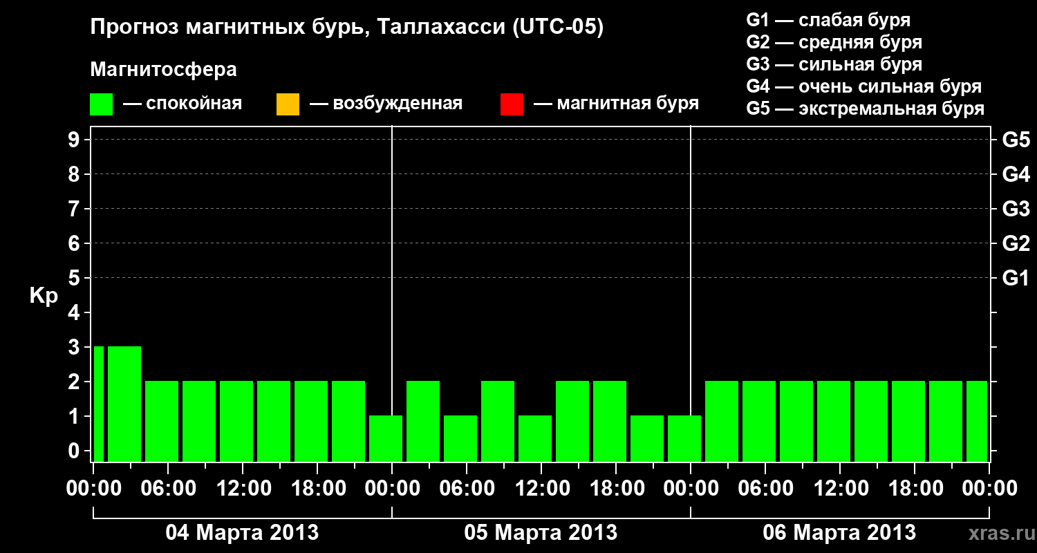 Прогноз магнитных бурь Таллахасси на 4 марта 2013 года