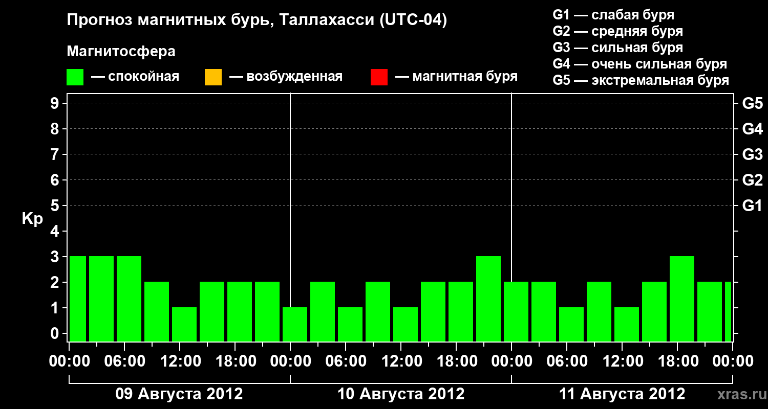 Прогноз магнитных бурь Таллахасси на 9 августа 2012 года