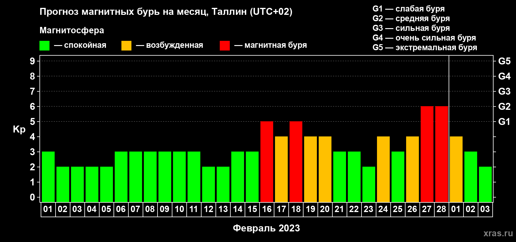 Прогноз магнитных бурь в Таллине — 1 февраля 2023 года