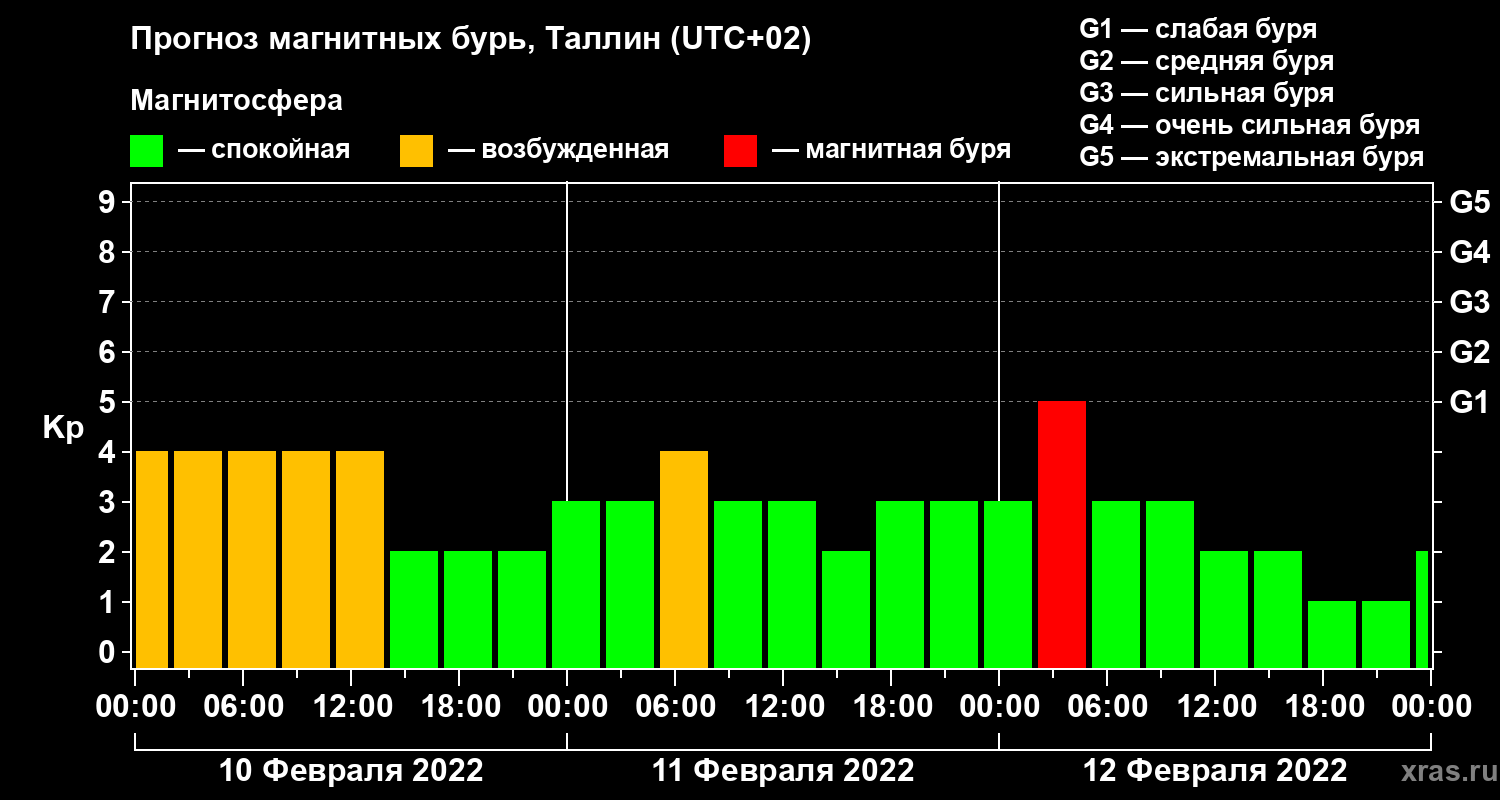 Прогноз магнитных бурь в Таллине — 10 февраля 2022 года