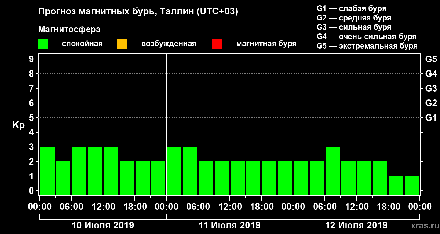 Прогноз магнитных бурь в Таллине — 10 июля 2019 года