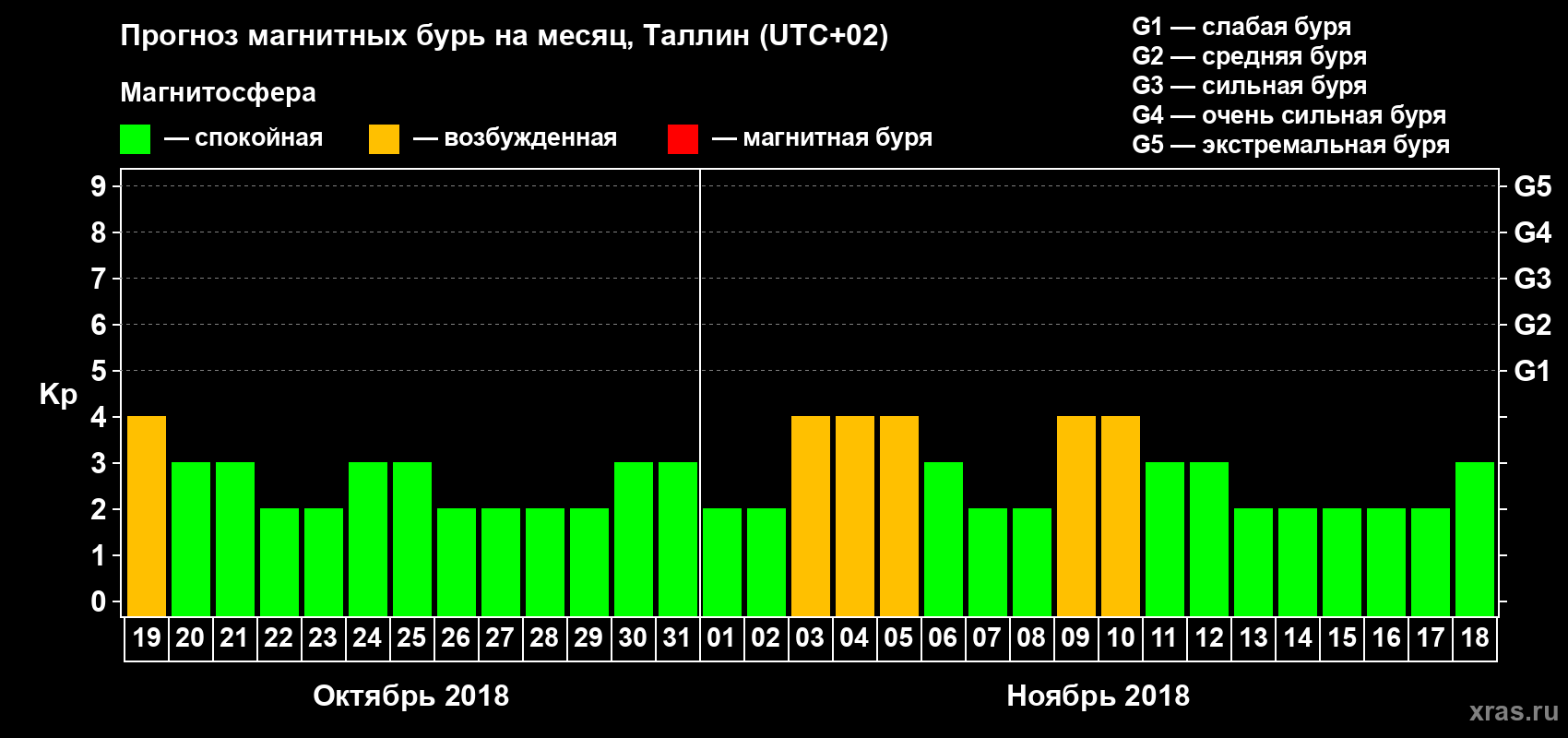 Прогноз магнитных бурь в Таллине — 19 октября 2018 года