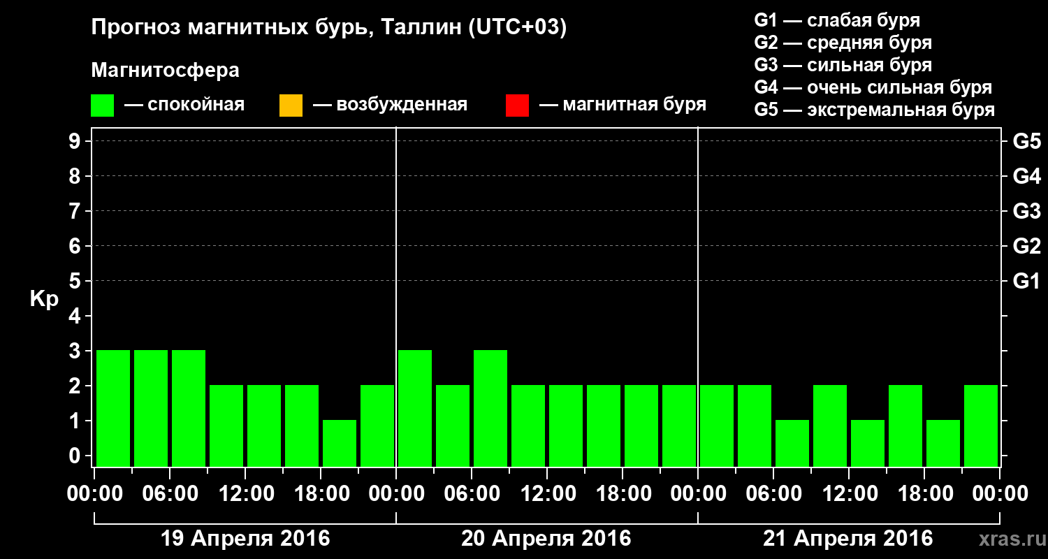 Прогноз магнитных бурь в Таллине — 19 апреля 2016 года
