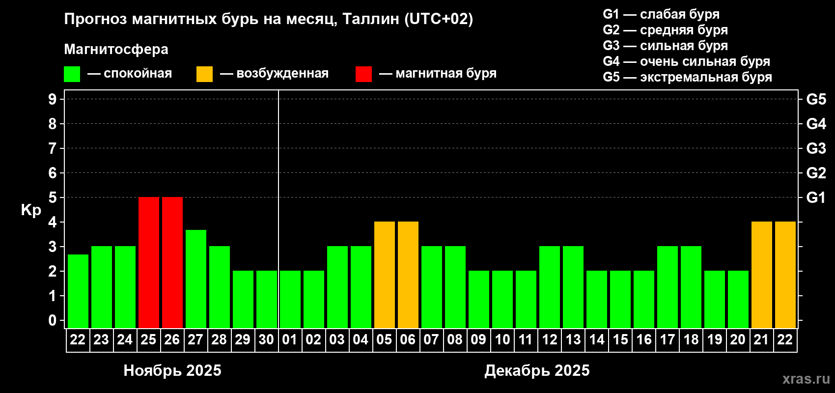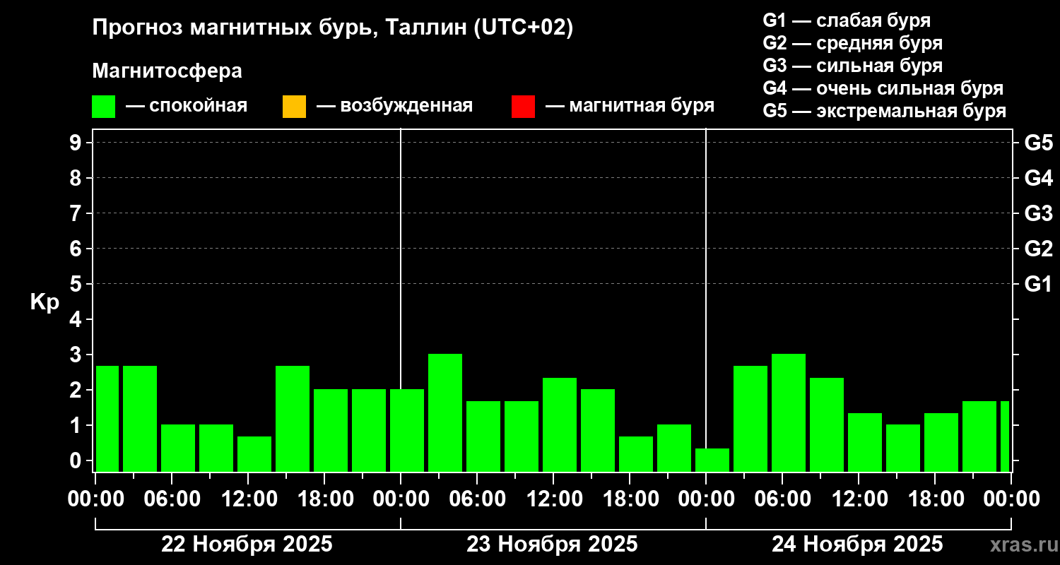 Прогноз магнитных бурь в Таллине — 22 ноября 2025 года