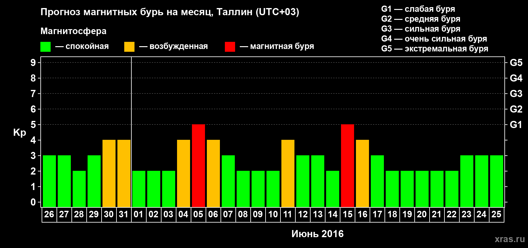 Прогноз магнитных бурь в Таллине — 26 мая 2016 года