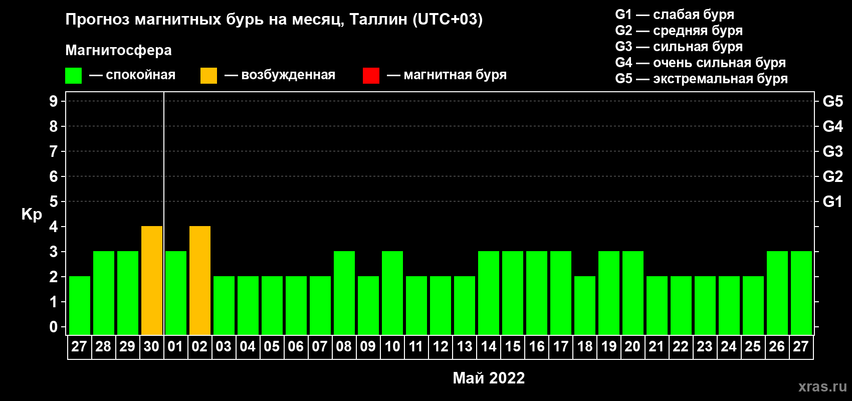 Прогноз магнитных бурь в Таллине — 27 апреля 2022 года