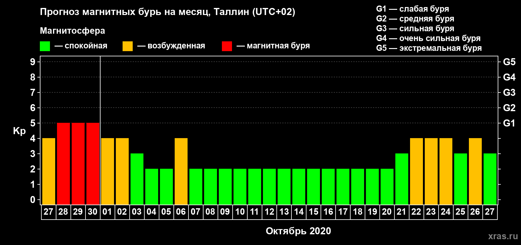 Прогноз магнитных бурь в Таллине — 27 сентября 2020 года