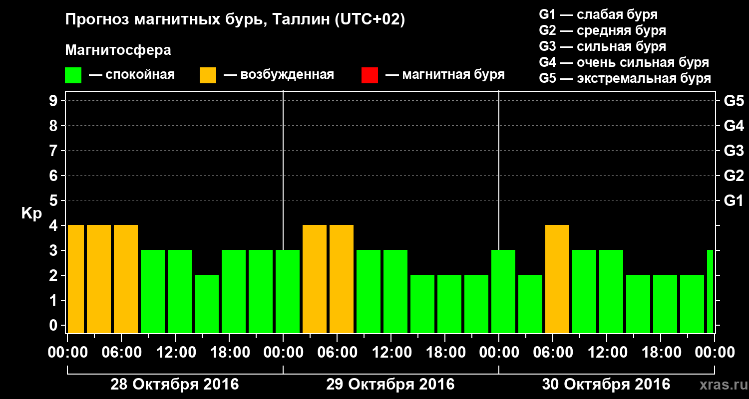 Прогноз магнитных бурь в Таллине — 28 октября 2016 года