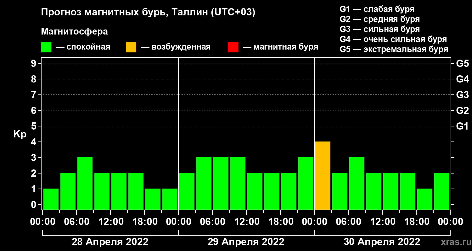 Прогноз магнитных бурь в Таллине — 28 апреля 2022 года