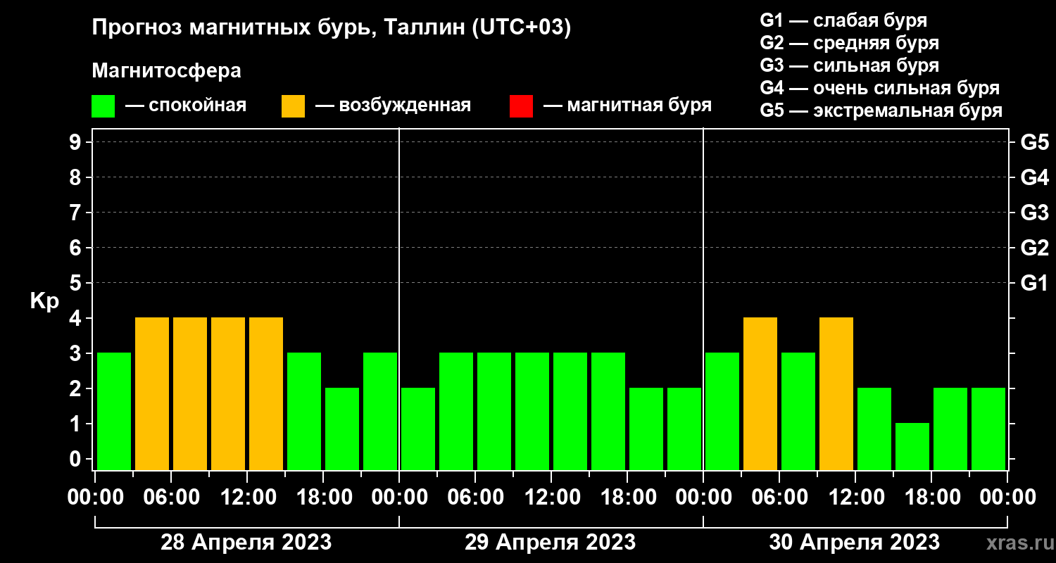 Прогноз магнитных бурь в Таллине — 28 апреля 2023 года