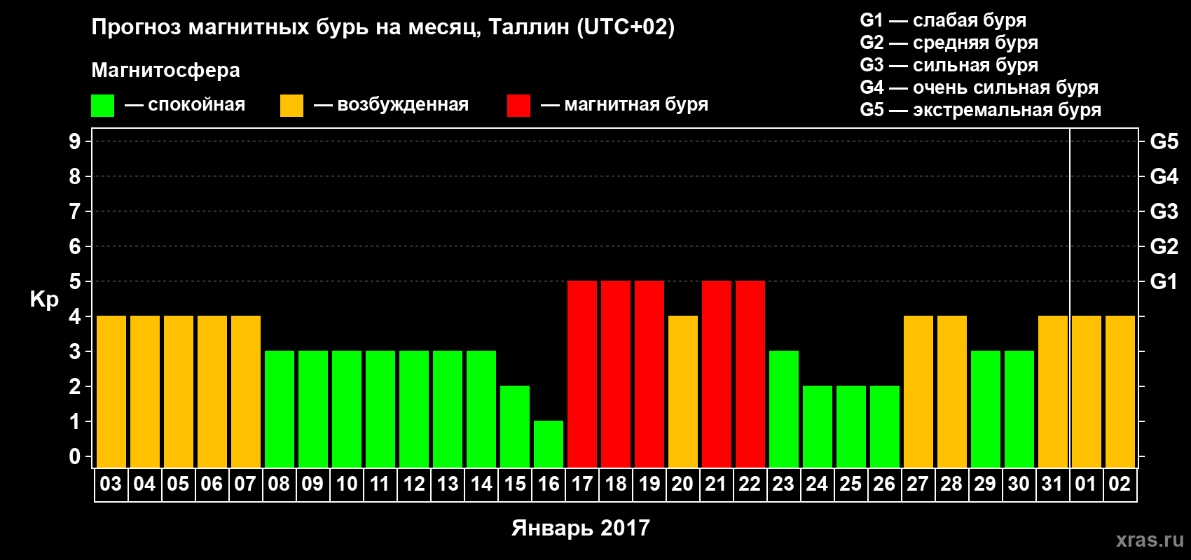 Прогноз магнитных бурь в Таллине — 3 января 2017 года