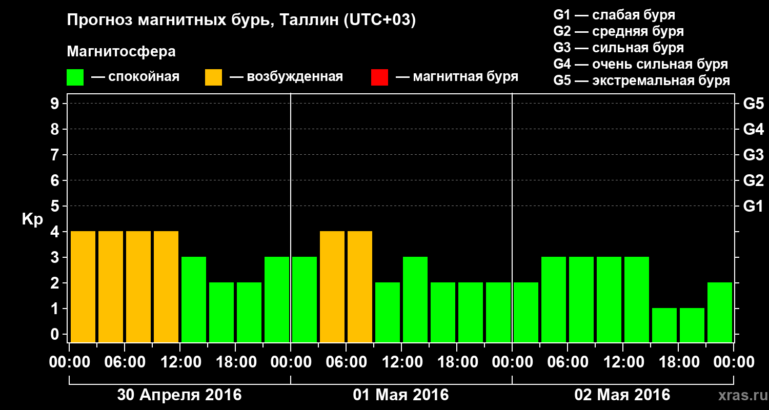 Прогноз магнитных бурь в Таллине — 30 апреля 2016 года