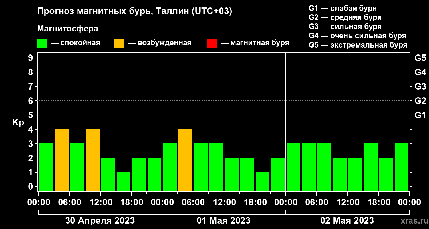 Прогноз магнитных бурь в Таллине — 30 апреля 2023 года