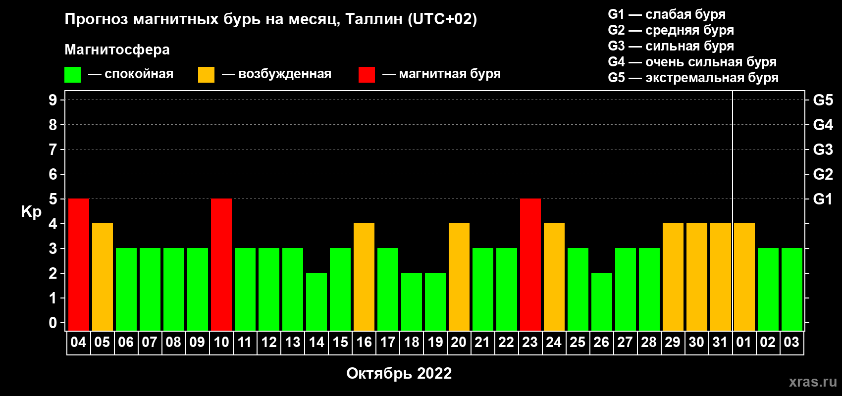 Прогноз магнитных бурь в Таллине — 4 октября 2022 года
