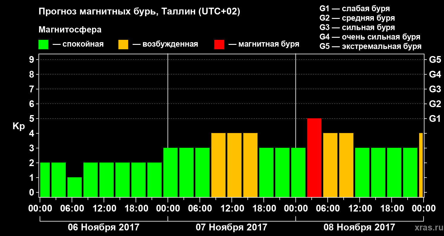 Прогноз магнитных бурь в Таллине — 6 ноября 2017 года