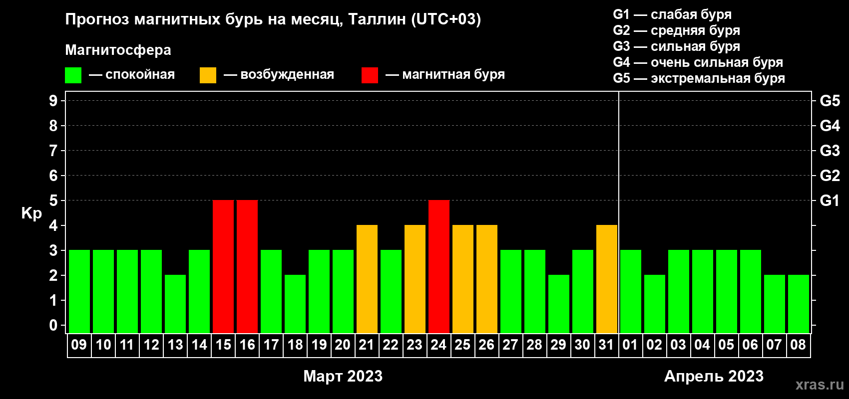 Прогноз магнитных бурь в Таллине — 9 марта 2023 года