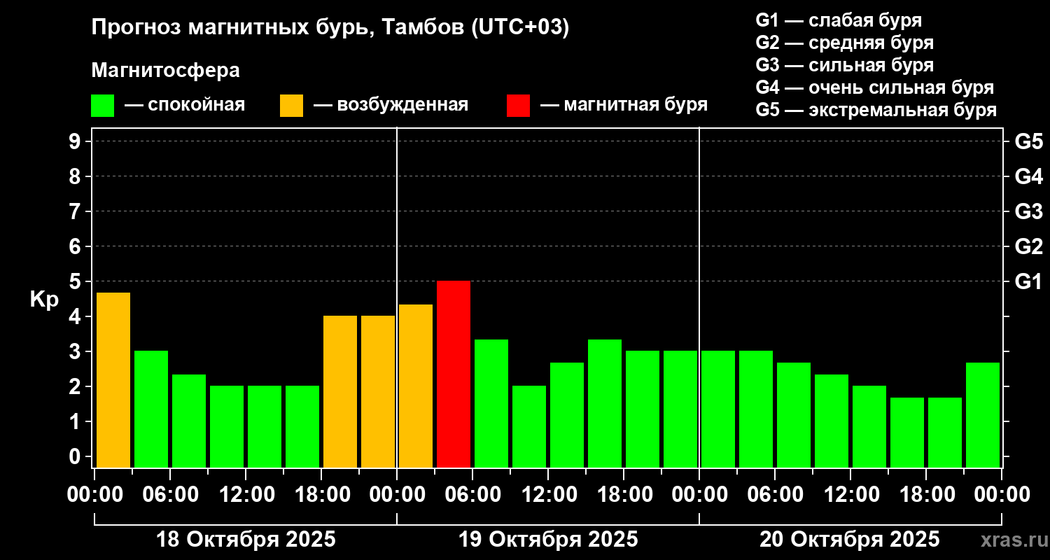 Прогноз магнитных бурь в Тамбове — 18 октября 2025 года