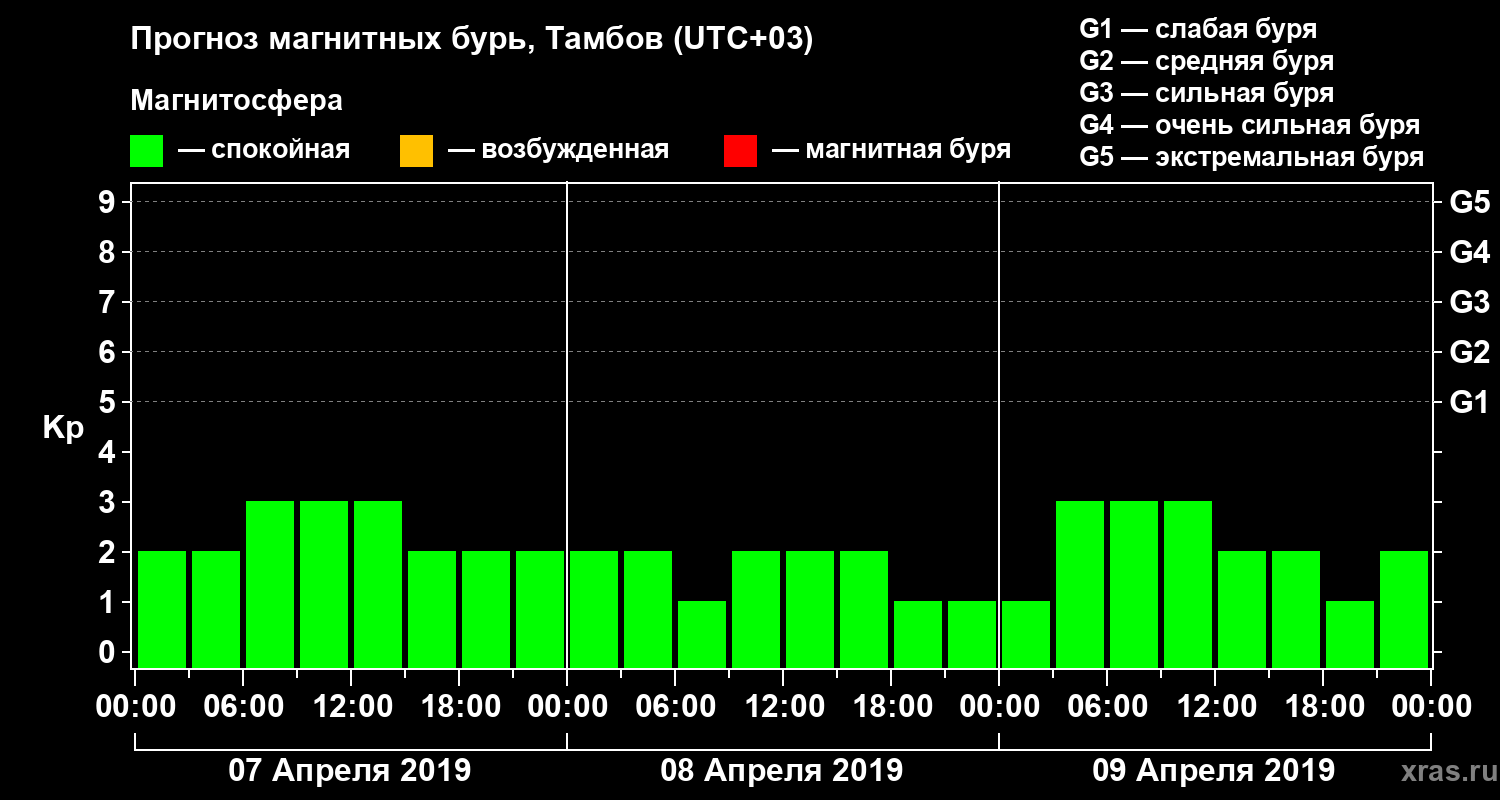 Прогноз магнитных бурь в Тамбове на 7 апреля 2019 года