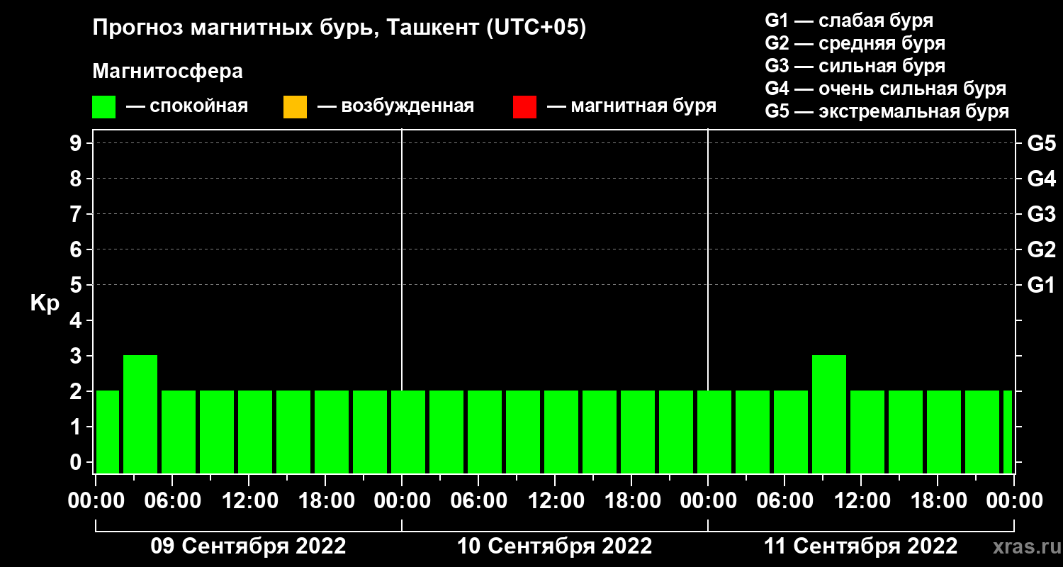 Прогноз магнитных бурь в Ташкенте — 9 сентября 2022 года