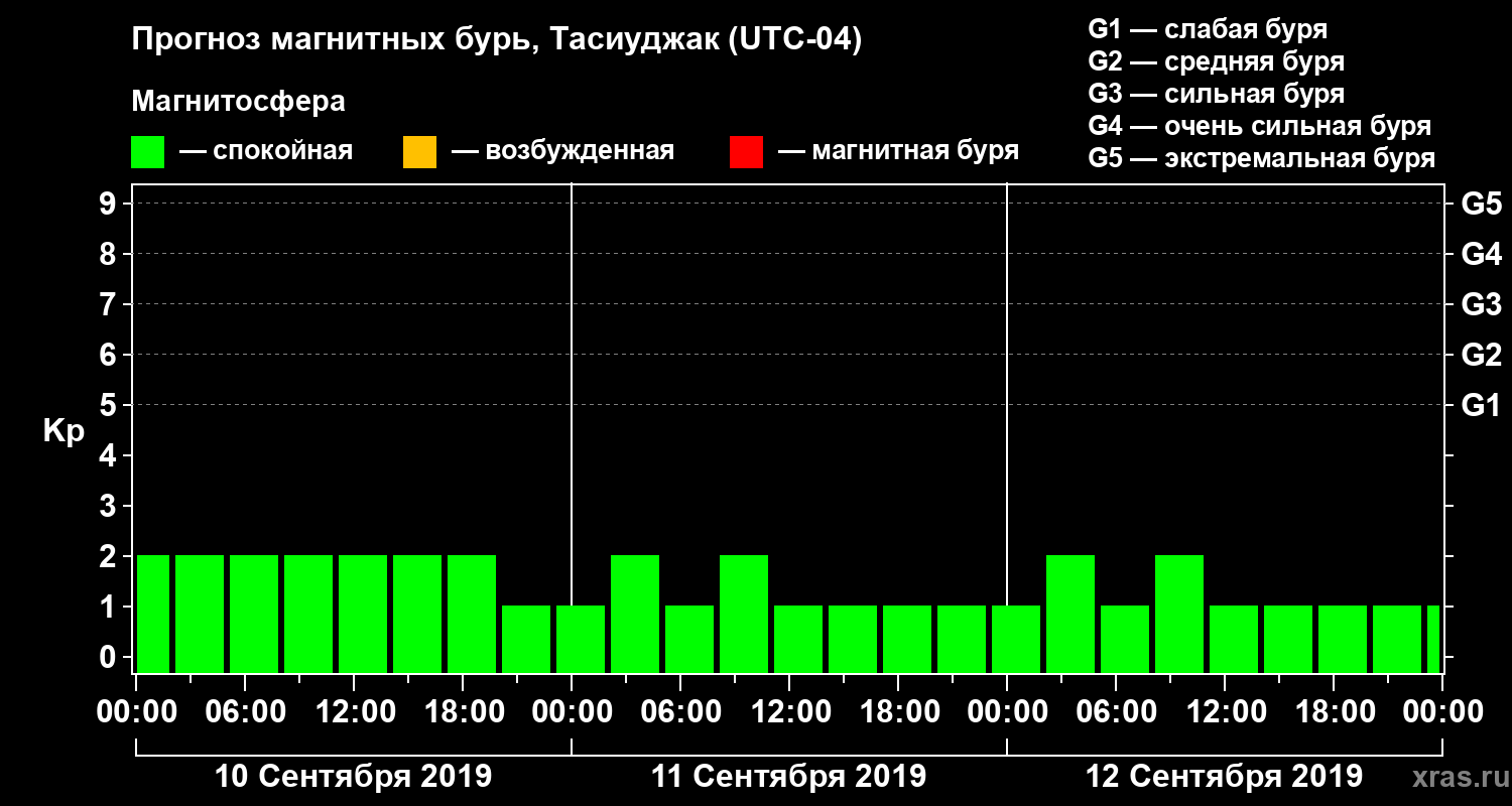 Прогноз магнитных бурь в Тасиуджаке — 10 сентября 2019 года