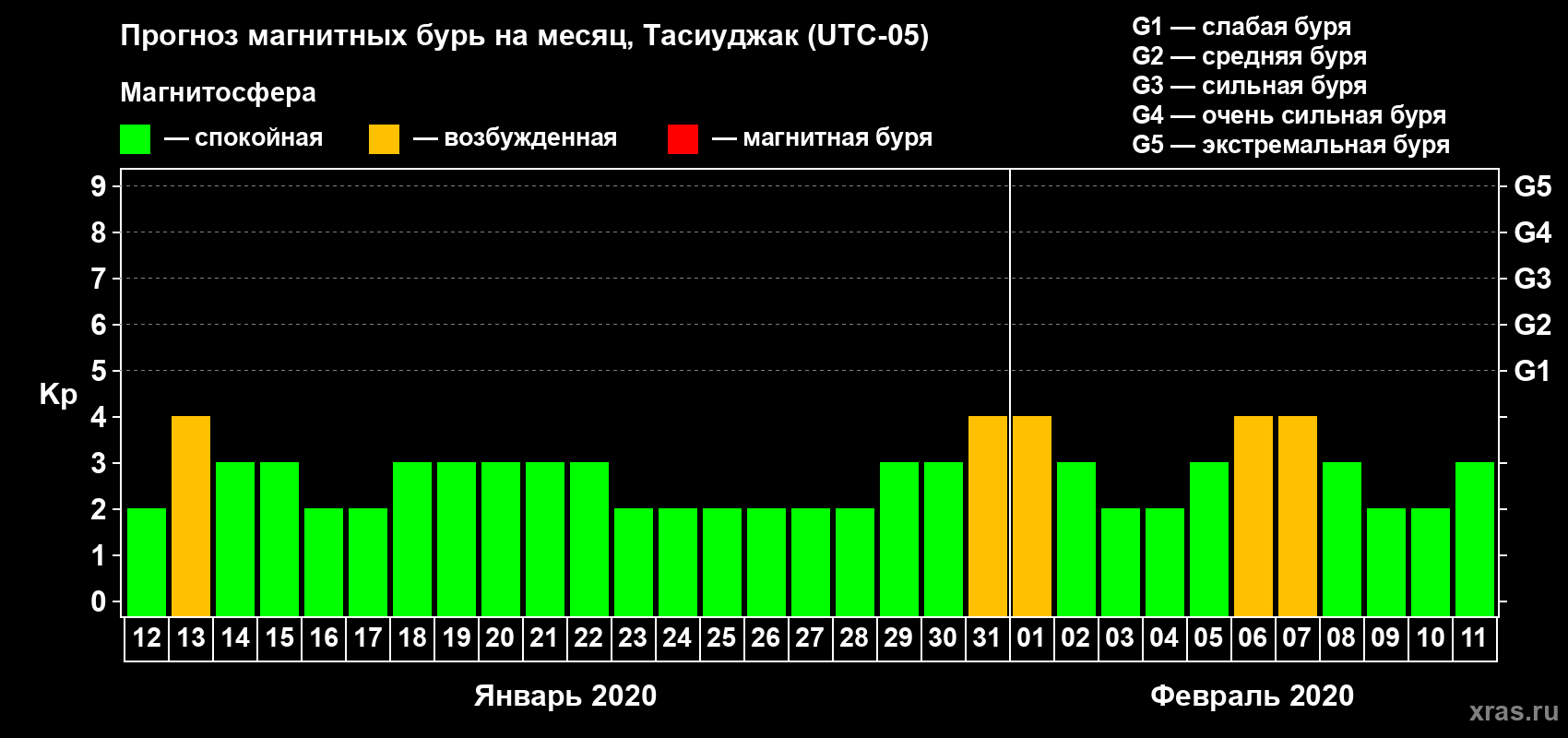 Прогноз магнитных бурь в Тасиуджаке — 12 января 2020 года