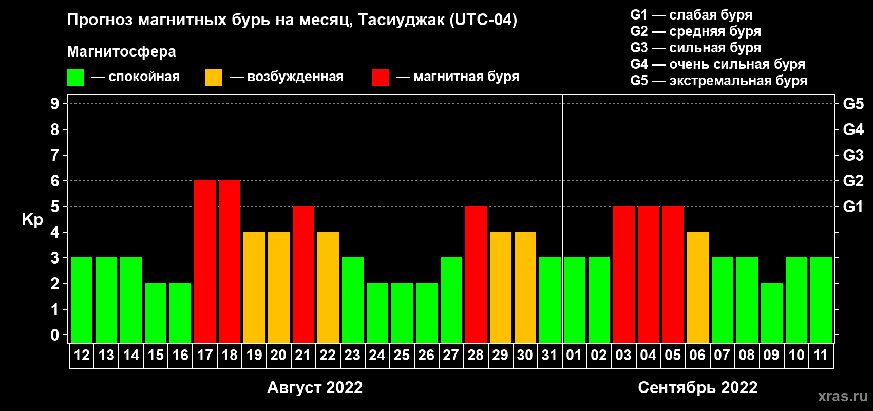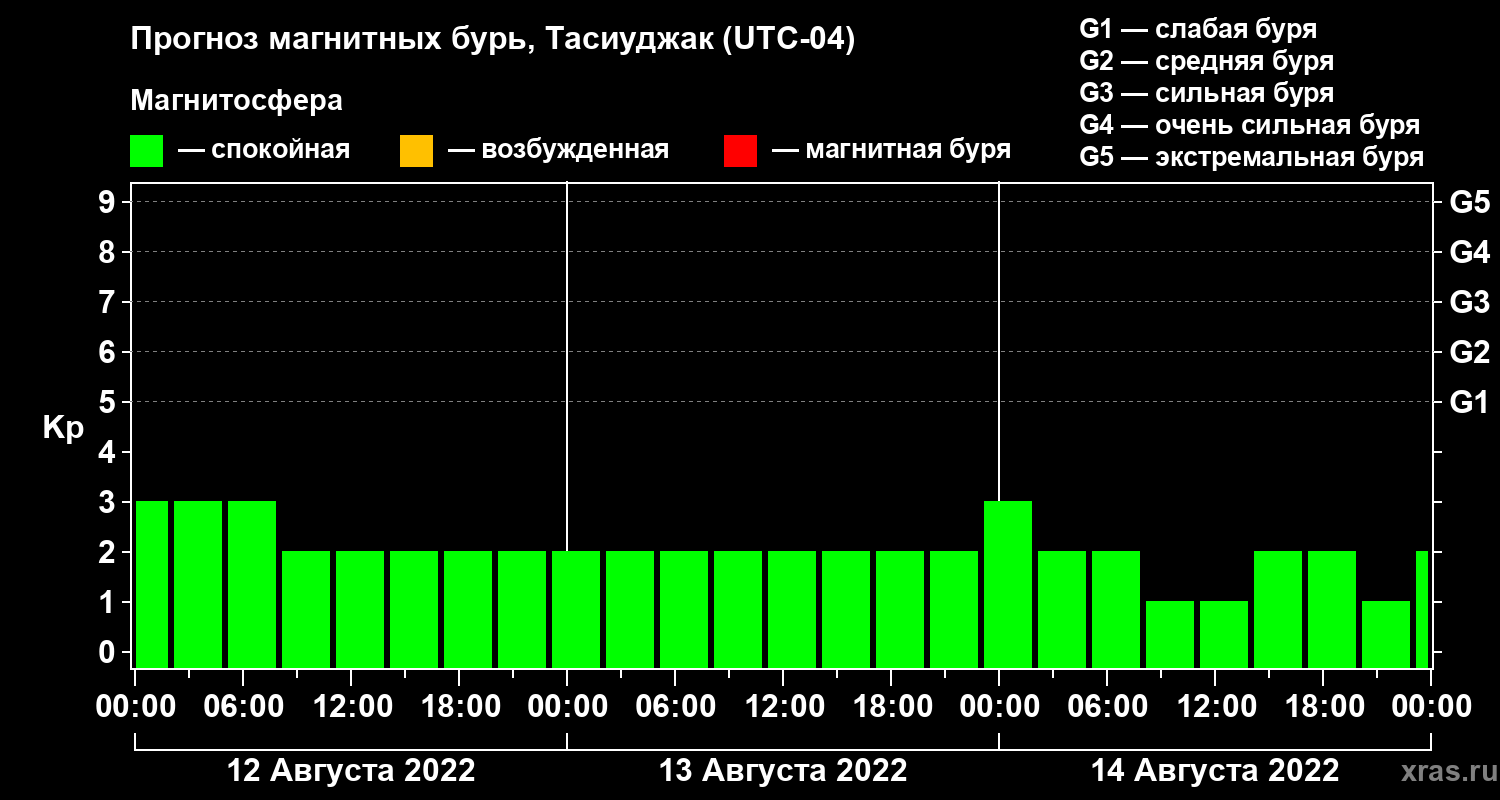 Прогноз магнитных бурь в Тасиуджаке — 12 августа 2022 года