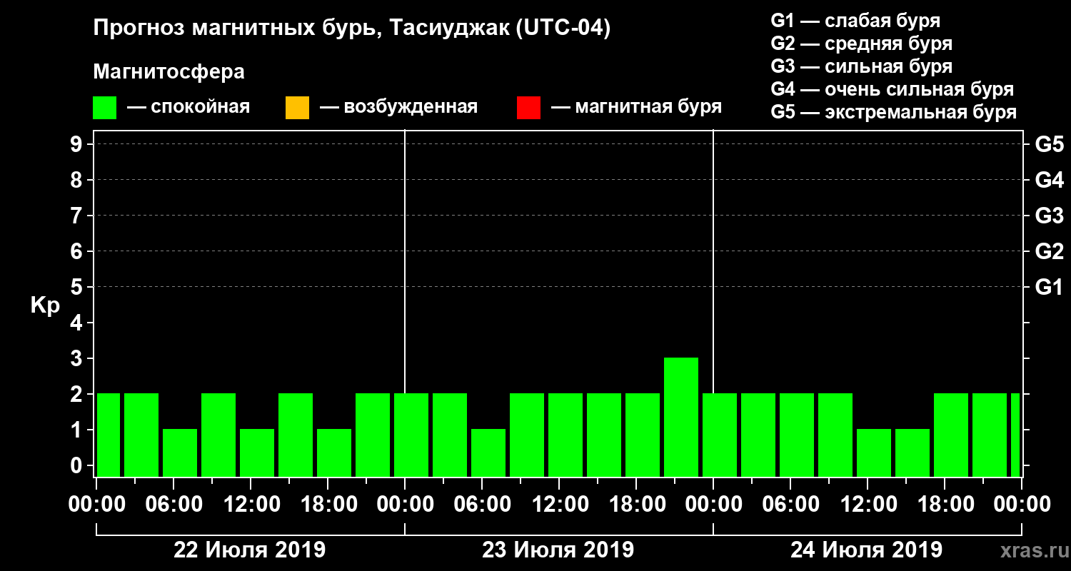 Прогноз магнитных бурь в Тасиуджаке — 22 июля 2019 года