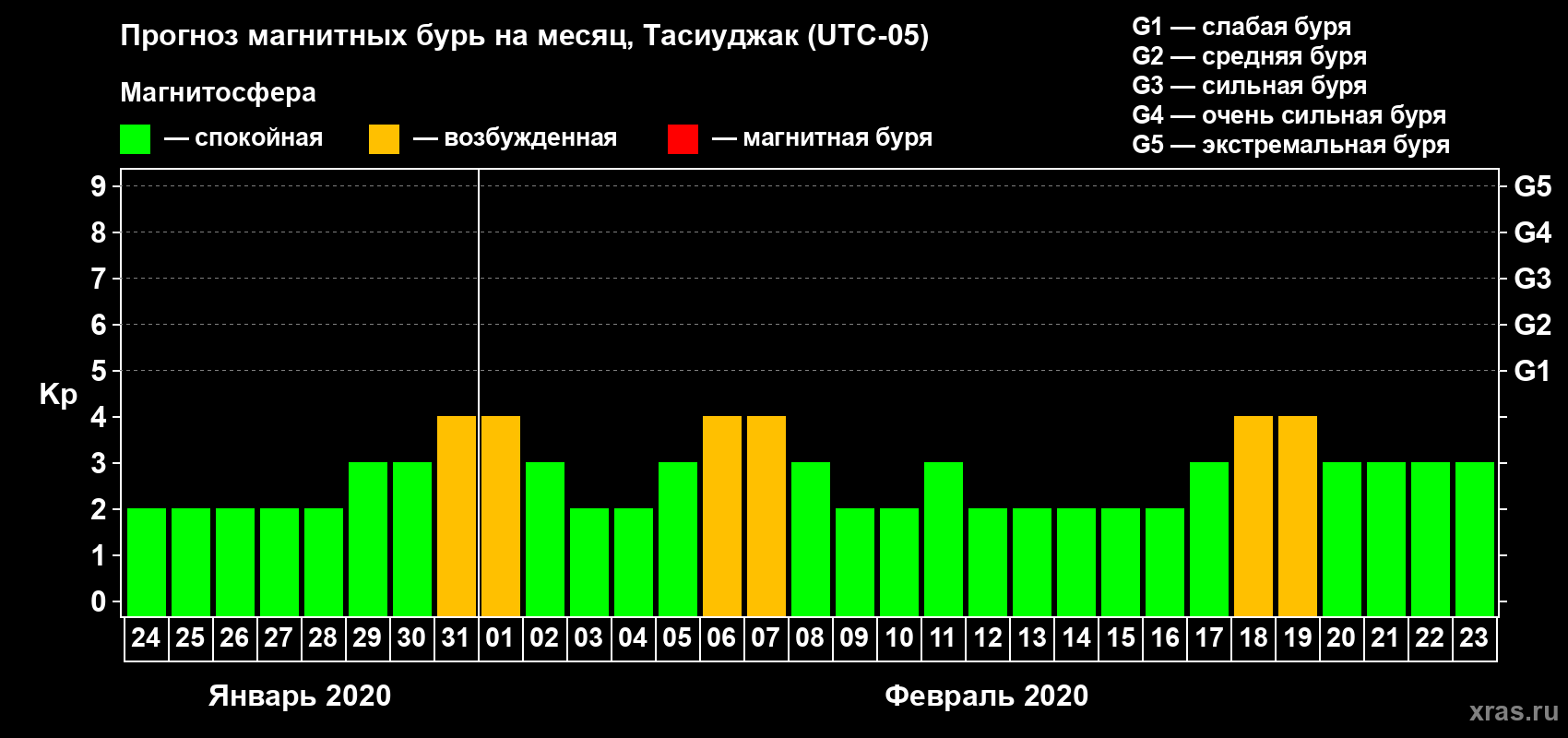 Прогноз магнитных бурь в Тасиуджаке — 24 января 2020 года