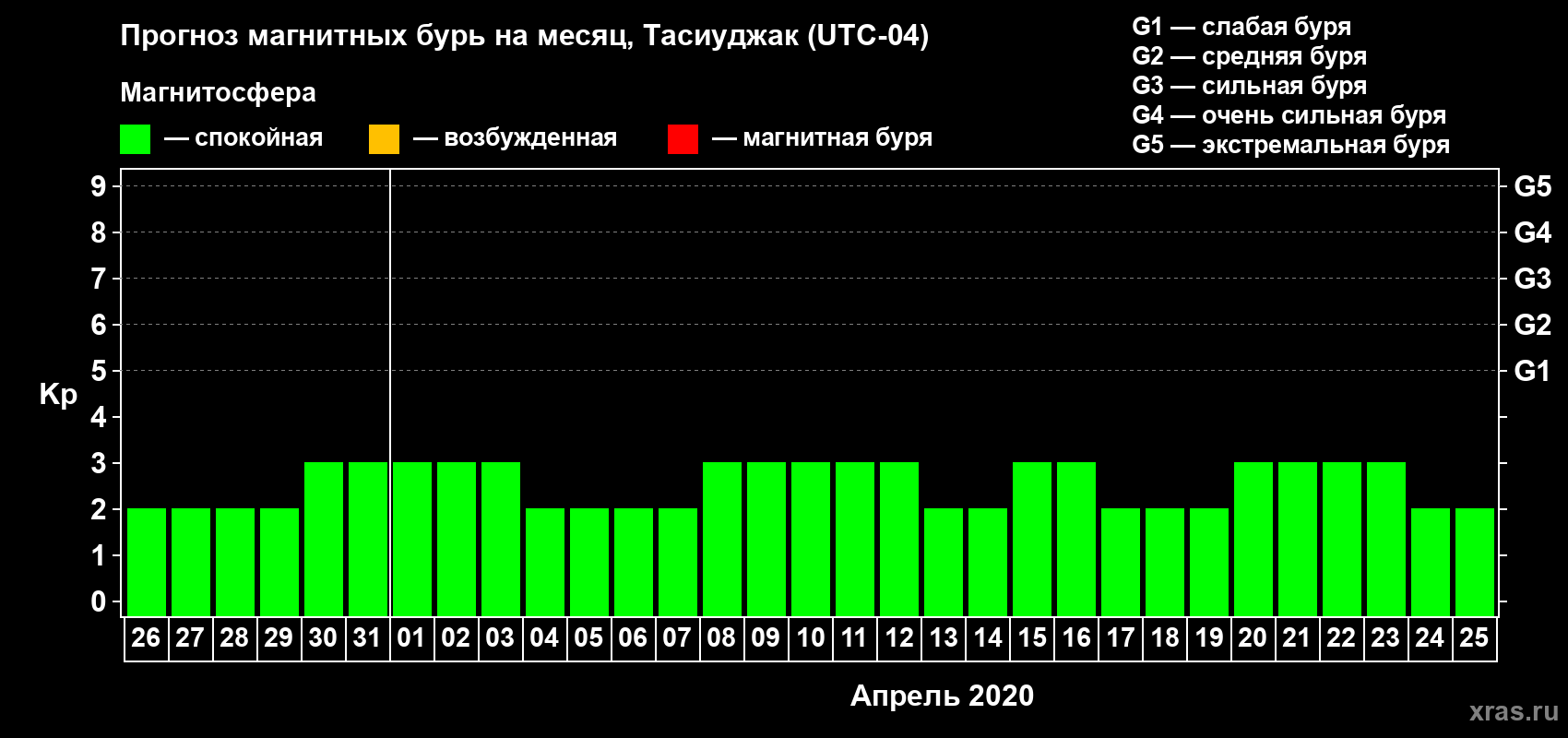 Прогноз магнитных бурь в Тасиуджаке — 26 марта 2020 года