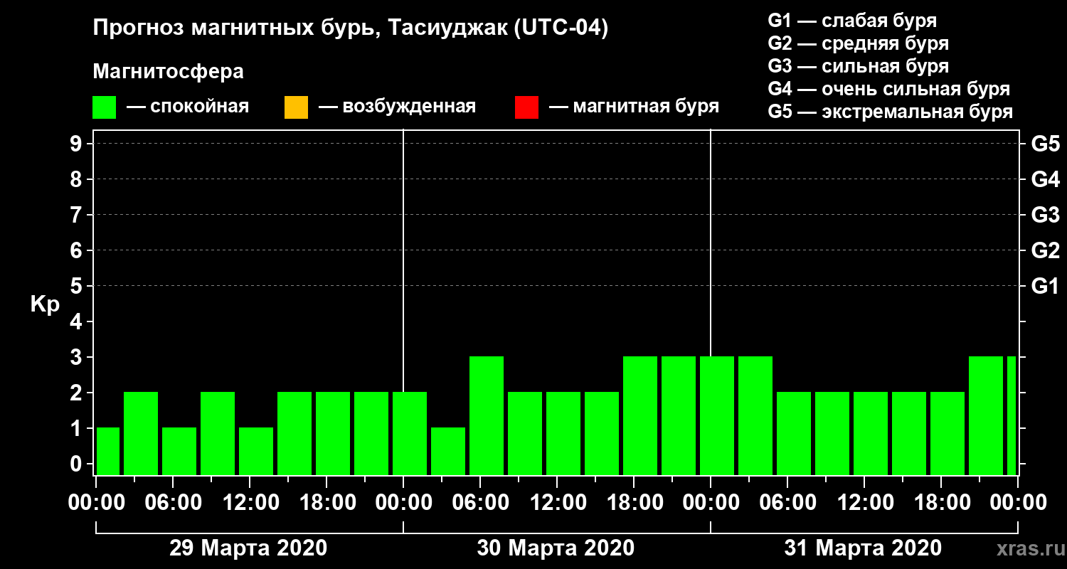 Прогноз магнитных бурь в Тасиуджаке — 29 марта 2020 года