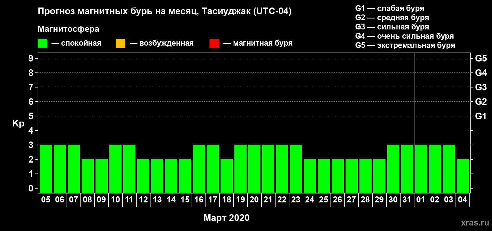 Прогноз магнитных бурь в Тасиуджаке — 5 марта 2020 года