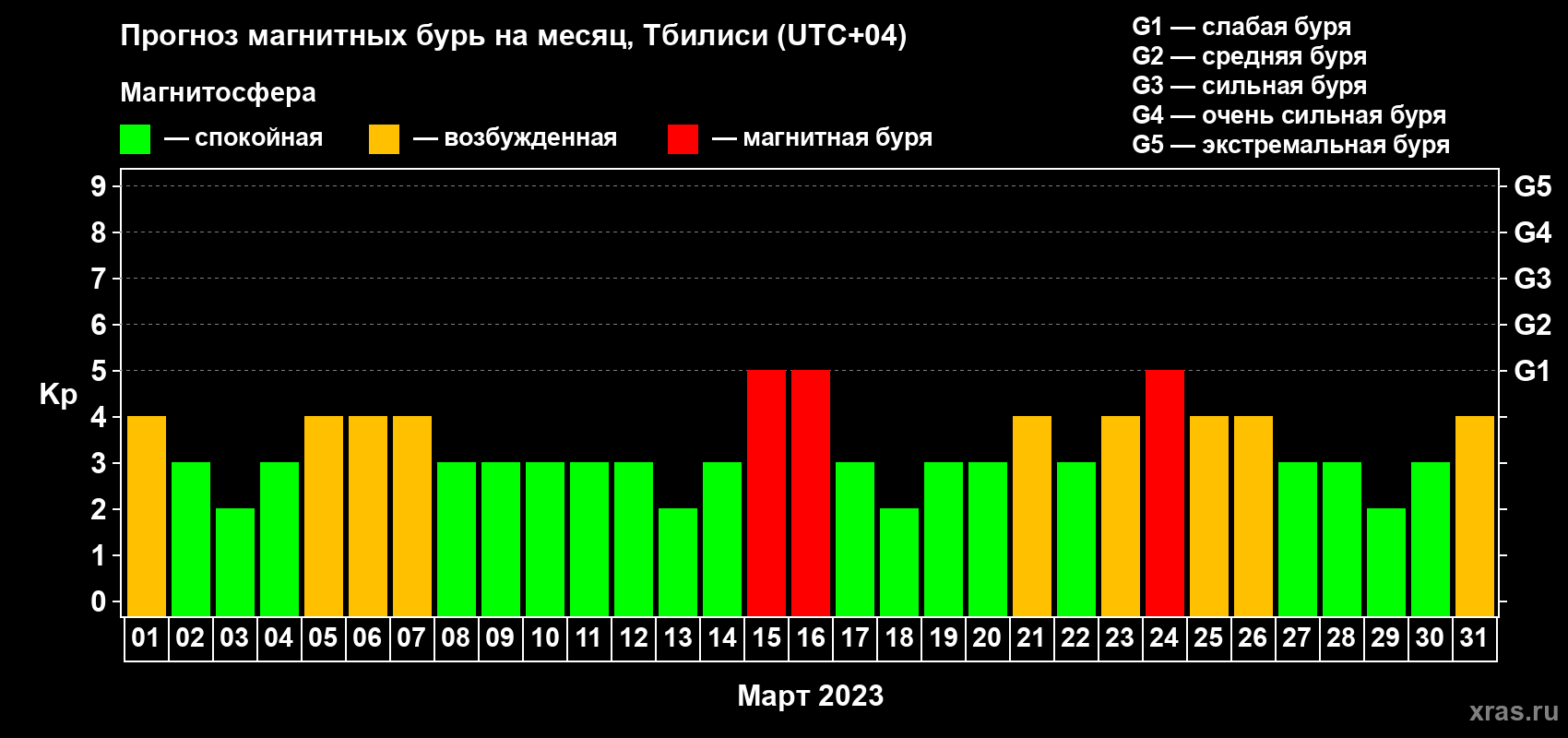Прогноз магнитных бурь Тбилиси — 1 марта 2023 года