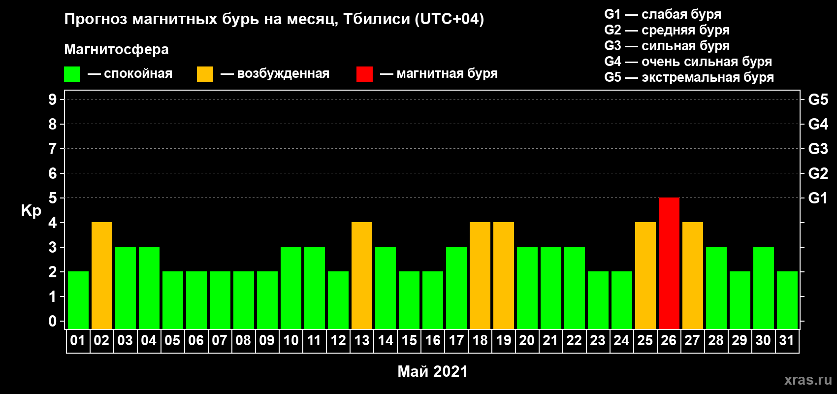 Прогноз магнитных бурь Тбилиси — 1 мая 2021 года