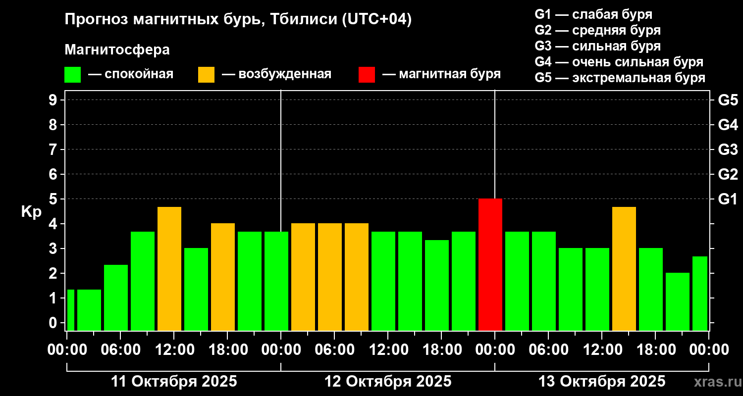 Прогноз магнитных бурь Тбилиси — 11 октября 2025 года