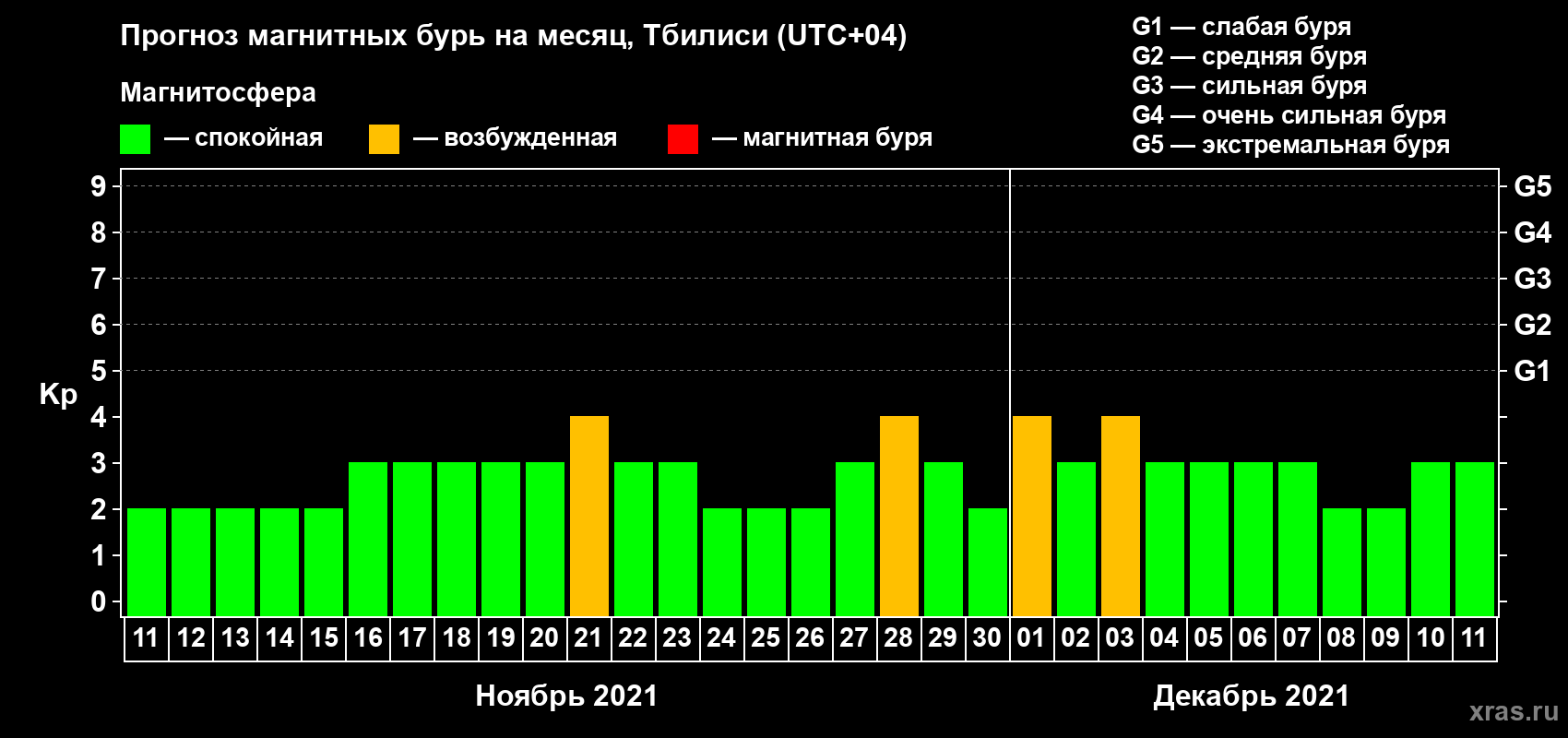 Прогноз магнитных бурь Тбилиси — 11 ноября 2021 года
