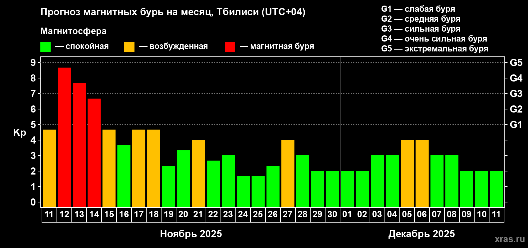 Прогноз магнитных бурь Тбилиси на 11 ноября 2025 года