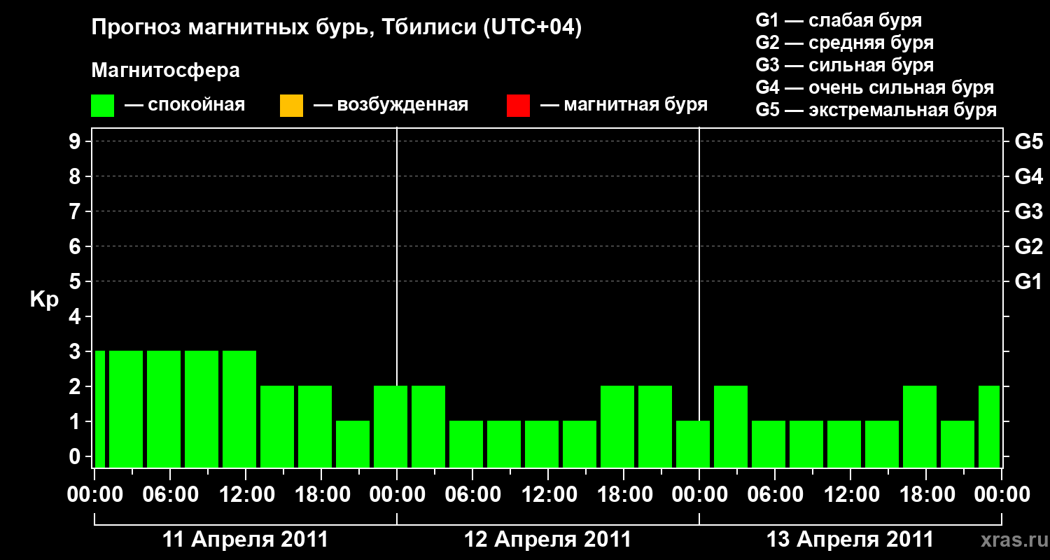 Прогноз магнитных бурь Тбилиси — 11 апреля 2011 года