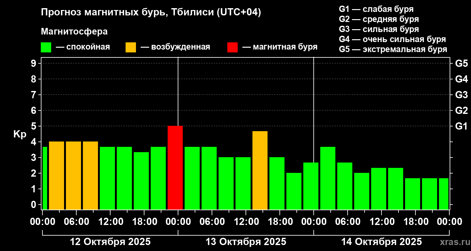 Прогноз магнитных бурь Тбилиси — 12 октября 2025 года