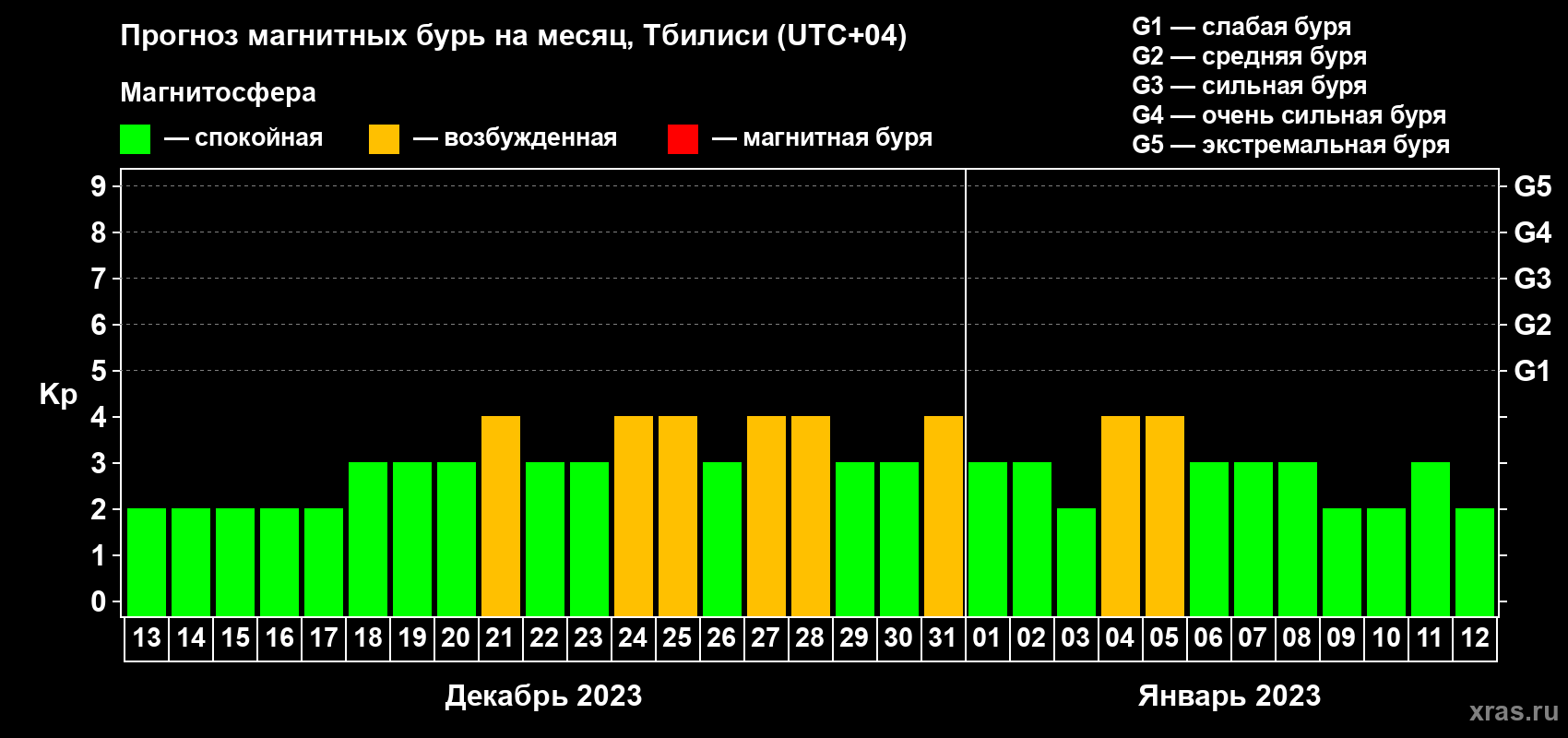 Прогноз магнитных бурь Тбилиси — 13 декабря 2022 года