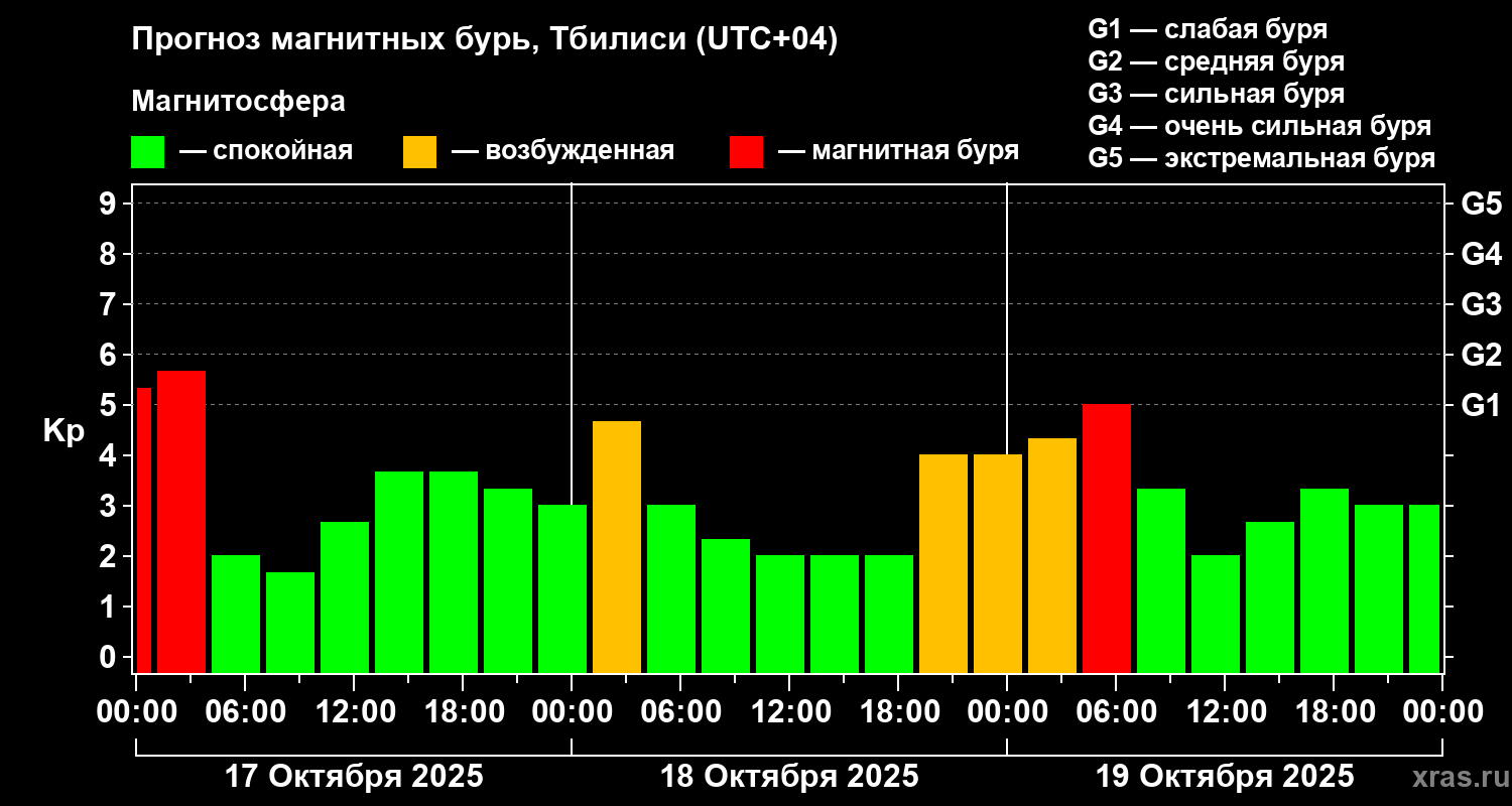 Прогноз магнитных бурь Тбилиси — 17 октября 2025 года
