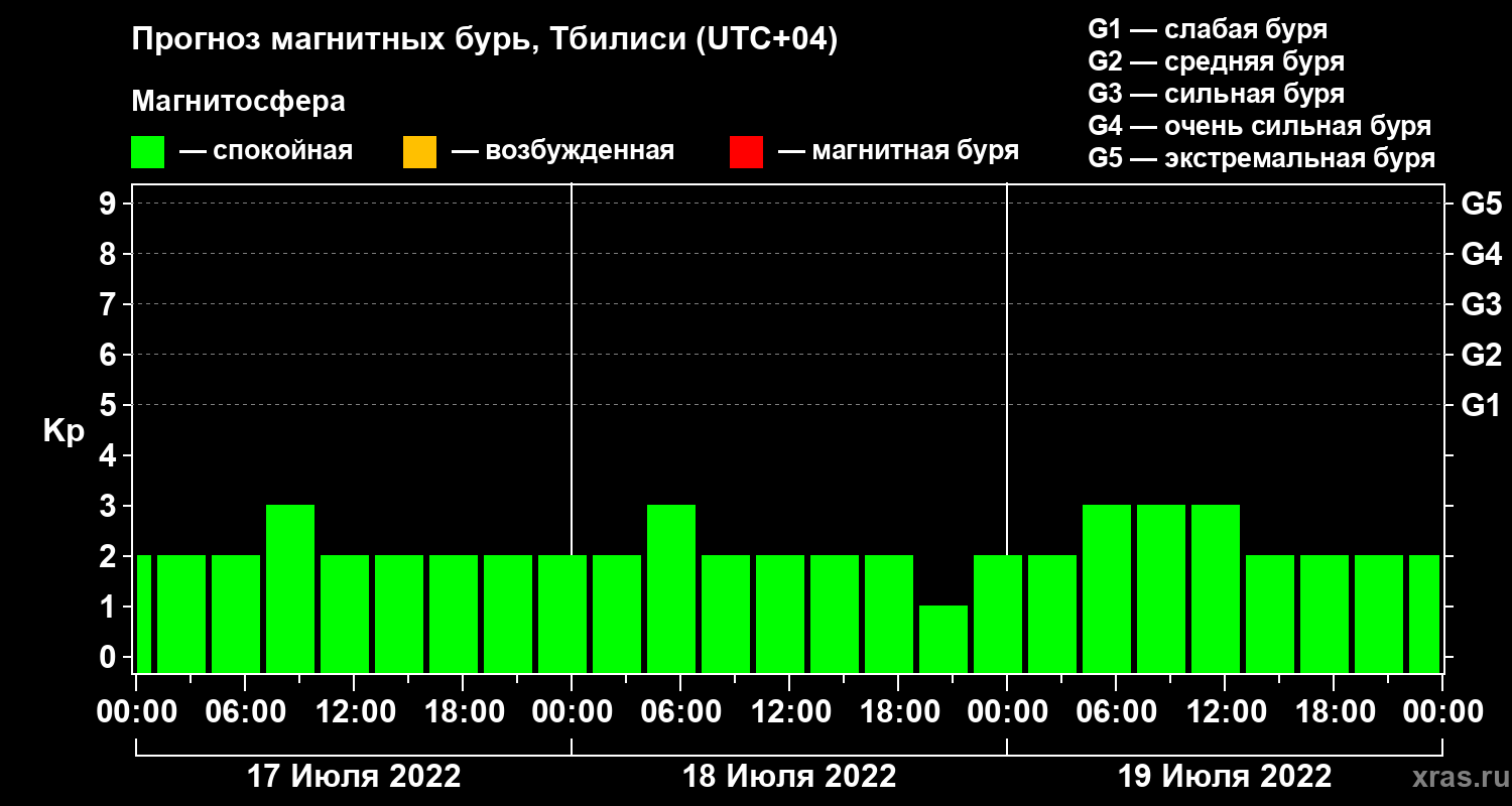 Прогноз магнитных бурь Тбилиси — 17 июля 2022 года