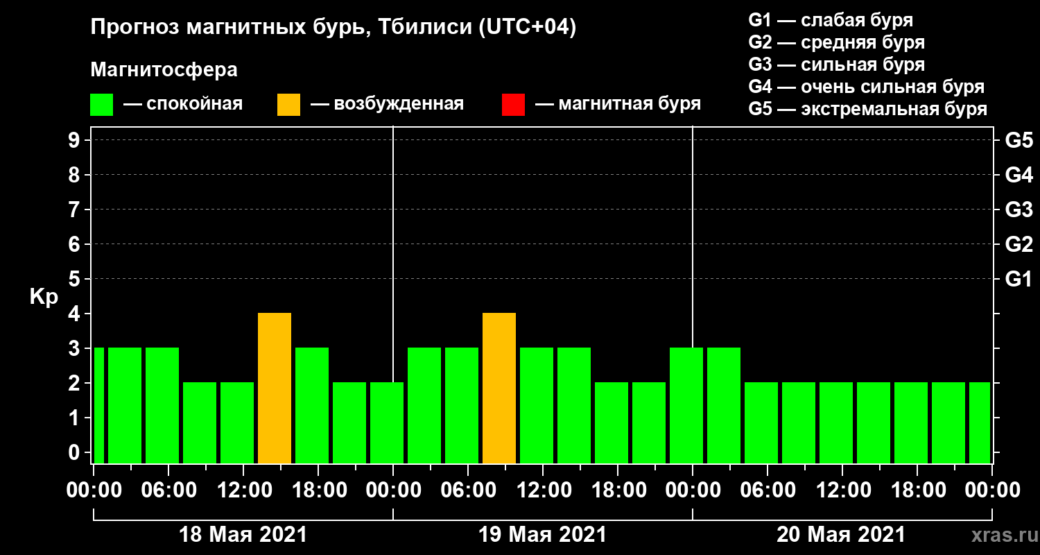 Прогноз магнитных бурь Тбилиси — 18 мая 2021 года