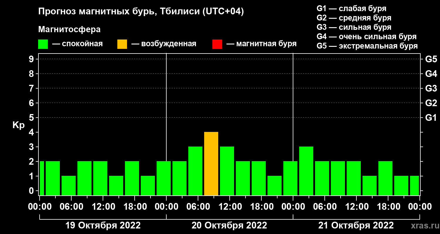 Прогноз магнитных бурь Тбилиси — 19 октября 2022 года