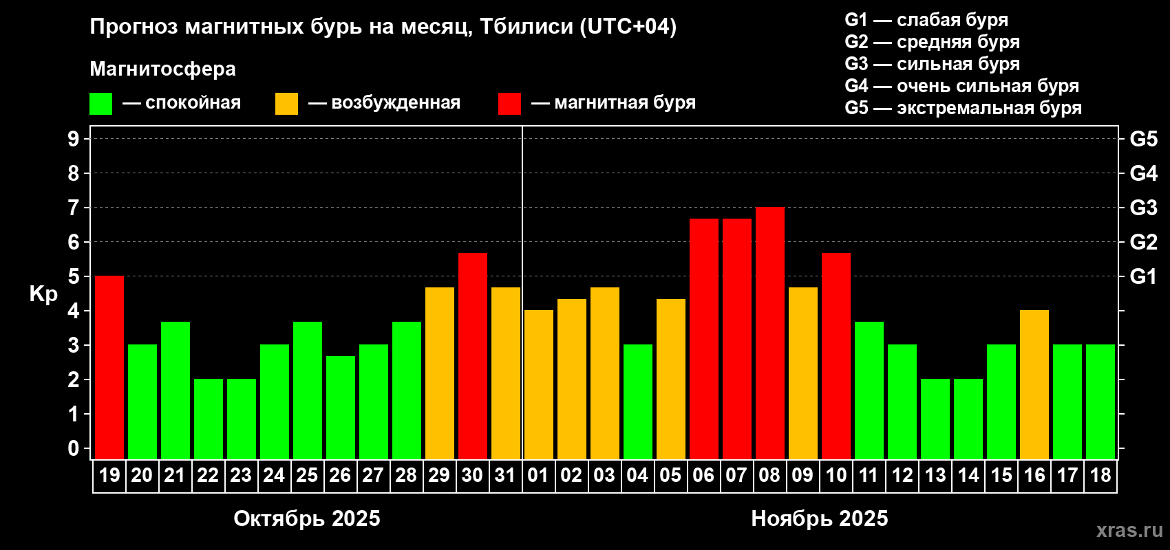 Прогноз магнитных бурь Тбилиси — 19 октября 2025 года